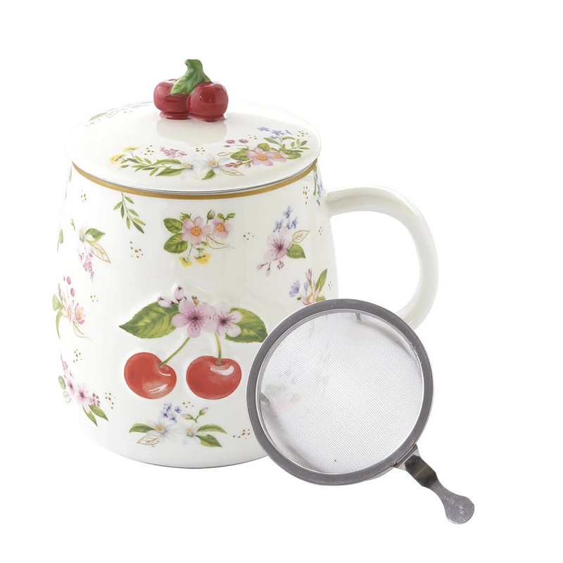Easy Life Fancy Fruit Κούπα 450 ml με καπάκι πορσελάνης cherry - Home Details