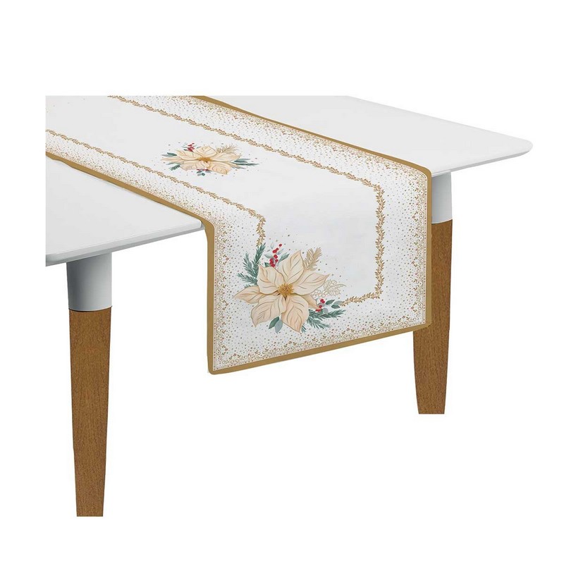 Η σειράς White Elegance σε χρωματισμούς του μπεζ, πράσινου Διακοσμήστε το αγαπημένο σας Τραπέζι με το βαμβακερό αυτό ύφασμα.