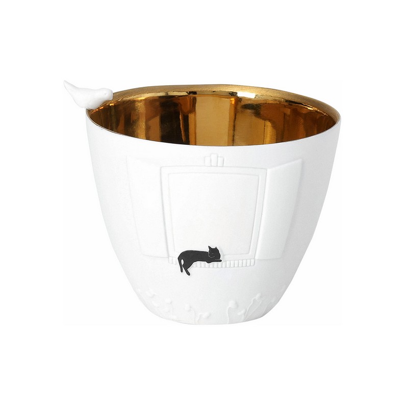 Rader Cat Visit Κηροπήγιο Επίχρυσο 9 εκ πορσελάνης