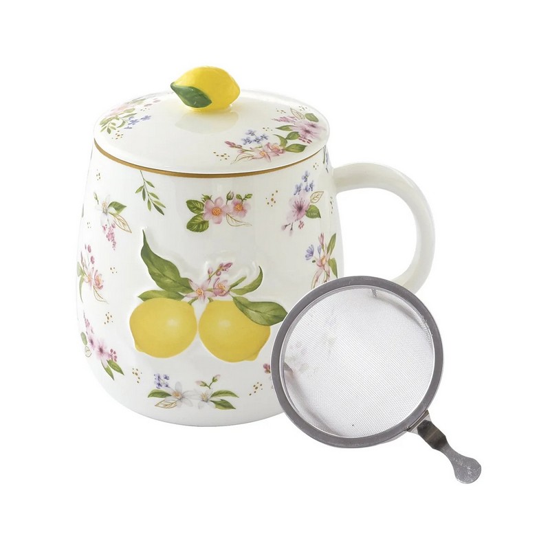 Easy Life Fancy Fruit Κούπα 450 ml με καπάκι πορσελάνης Lemon - Home Details