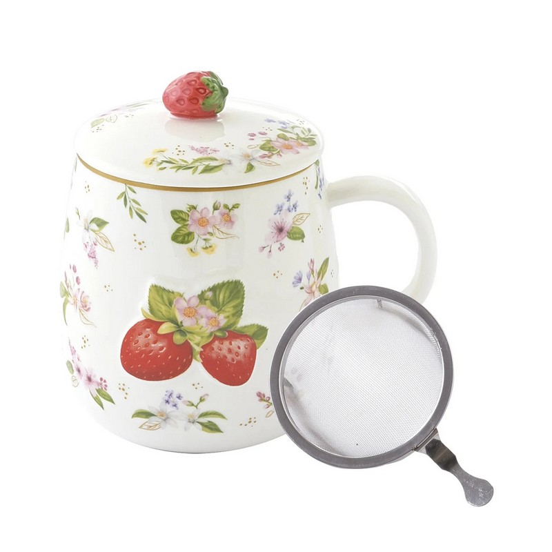 Easy Life Fancy Fruit Κούπα 450 ml με καπάκι πορσελάνης Strawberry - Home Details