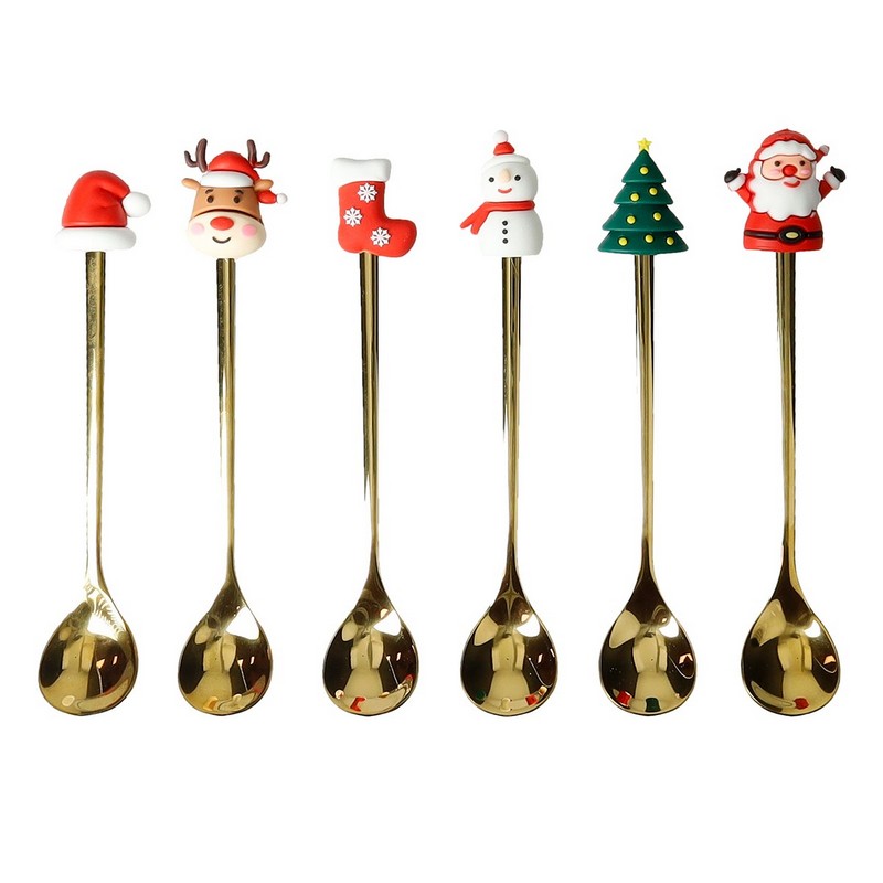 Το σετ 6 τεμ από κουταλάκια γλυκού σε χρυσή απόχρωση με διακοσμητικό Χριστουγεννιάτικο στοιχείο από σιλικόνη σε όμορφο κουτί δώρου