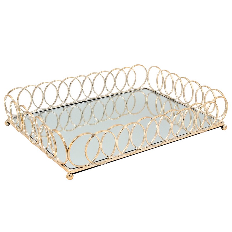 Keskor Δίσκος Ορθογώνιος 37Χ27 εκ. επίχρυσος με καθρέπτη - Home Details