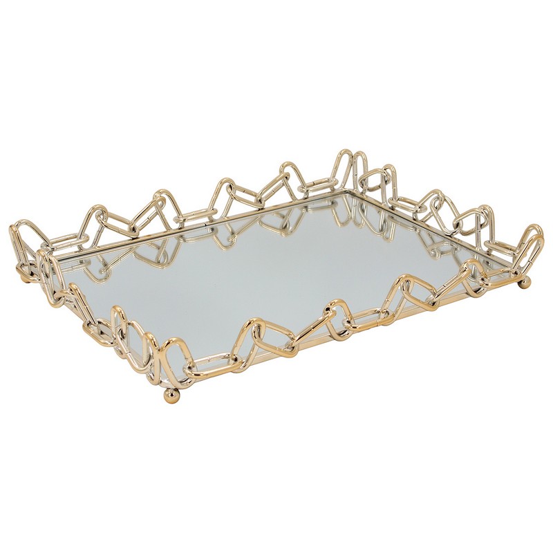 Keskor Δίσκος Ορθογώνιος 40Χ29 εκ. επίχρυσος με καθρέπτη - Home Details